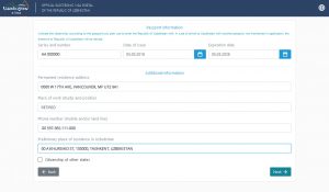 We recommend ignoring the “Citizenship of other states” tick box. Again, completing this often results in a system error at the end. When completing the application for the e-visa, you should enter the details of the passport you intend to use to enter Uzbekistan. There should be no need for dual citizens to provide information on their other passport to obtain the e-visa, or to show this other passport when entering or traveling around Uzbekistan.